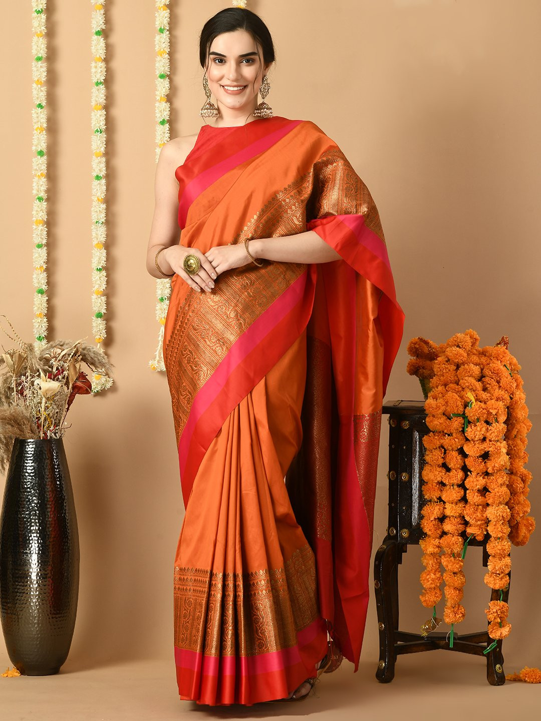 Brown Satin Banarasi Saree