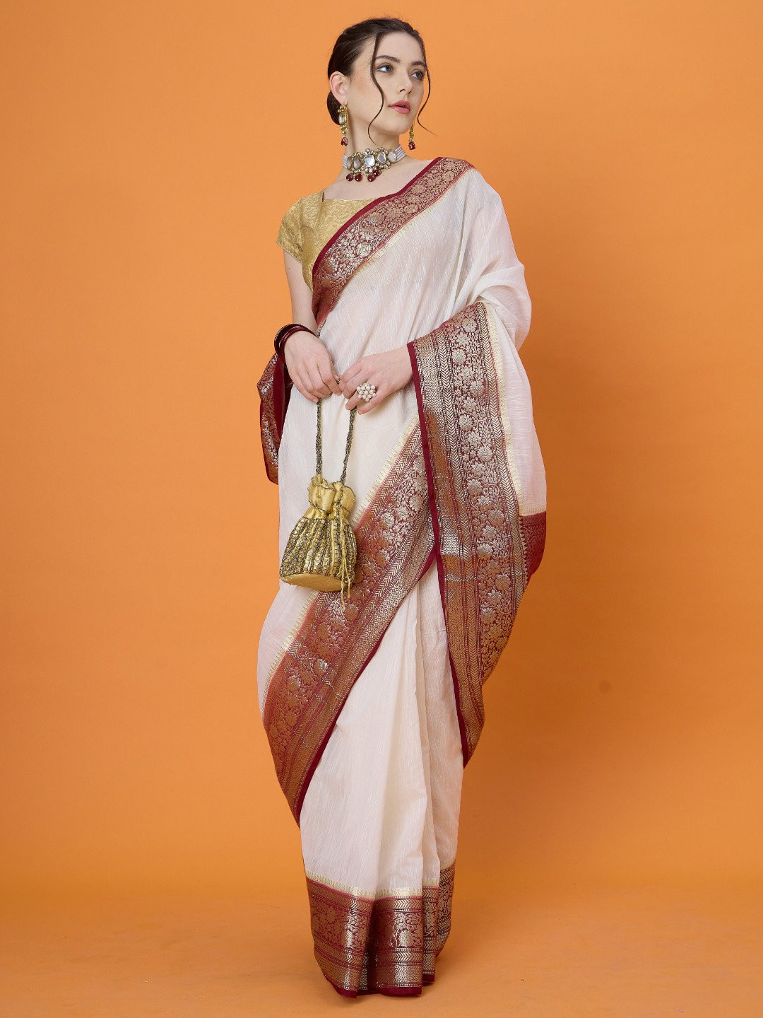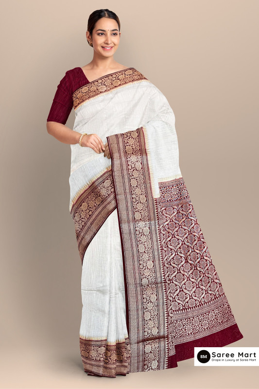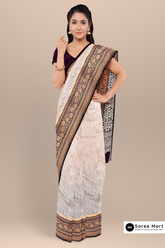 Experience the elegance of simplicity with our Safed White Matka Cotton Saree. This timeless piece is crafted from premium Matka cotton, known for its soft texture and breathable comfort. The pristine white hue embodies purity and grace, making it a versatile addition to any wardrobe. Whether for a casual day out or a special occasion, this saree drapes beautifully, offering both style and ease of wear. Pair it with your favorite accessories to create a look that is both classic and contemporary. Perfect for those who appreciate understated luxury and traditional craftsmanship.
